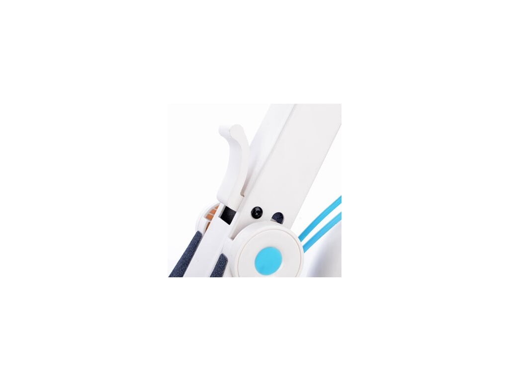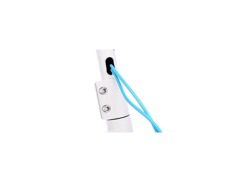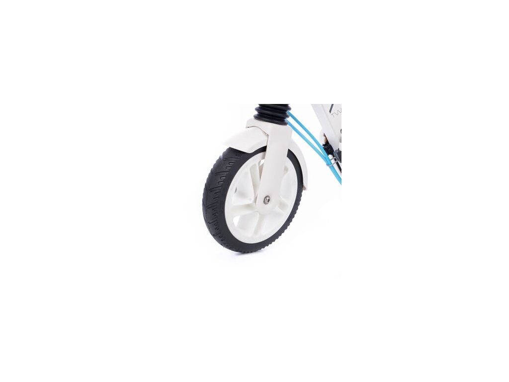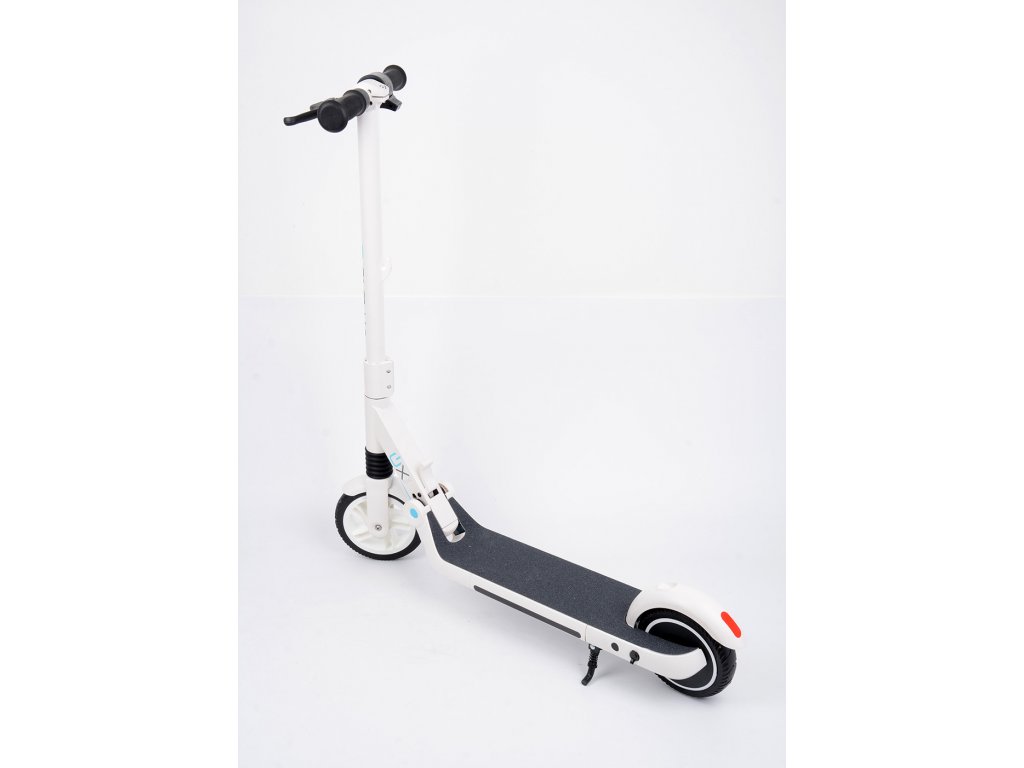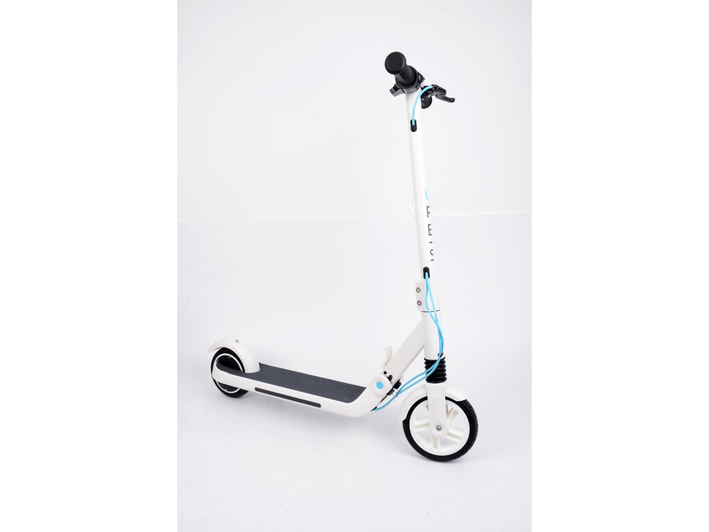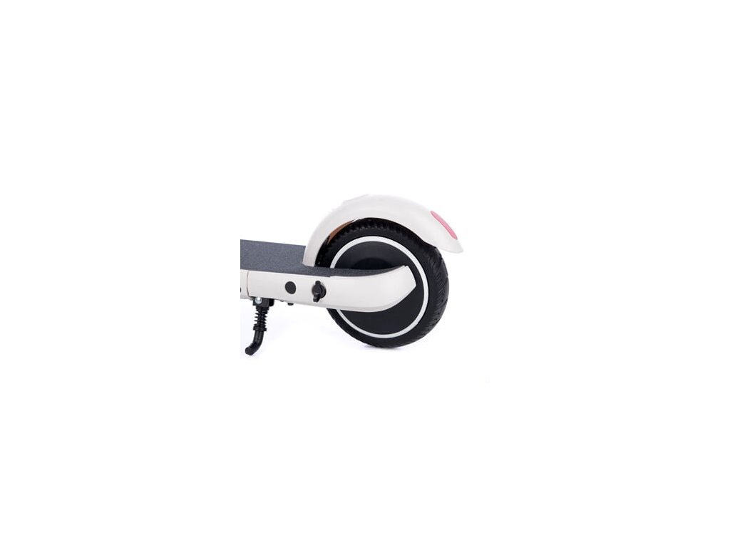 Štýlová detská elektrická kolobežka s výkonným 150 W motorom. Vďaka kapacite batérie 2,5 Ah má dojazd cca 10 km (záleží na poveternostných podmienkach, hmotnosti jazdca, kvalite povrchu a pod.). Na riadidlách sa nachádza páčka prítlačnej a súčasne aj elektrickej brzdy. Aby bolo brzdenie ešte efektívnejšie, zadný blatník slúži aj ako nášľapná brzda, tzn., že e-kolobežka je osadená 3 brzdovými systémami. Na doske sa nachádza výklopný stojan.
