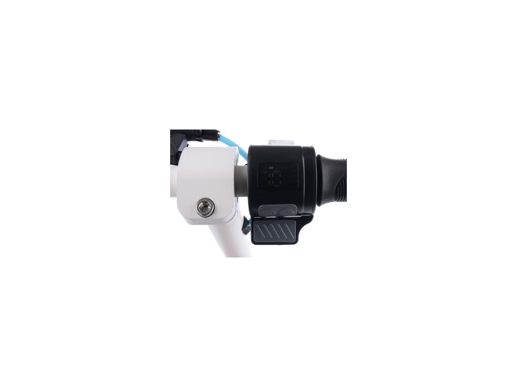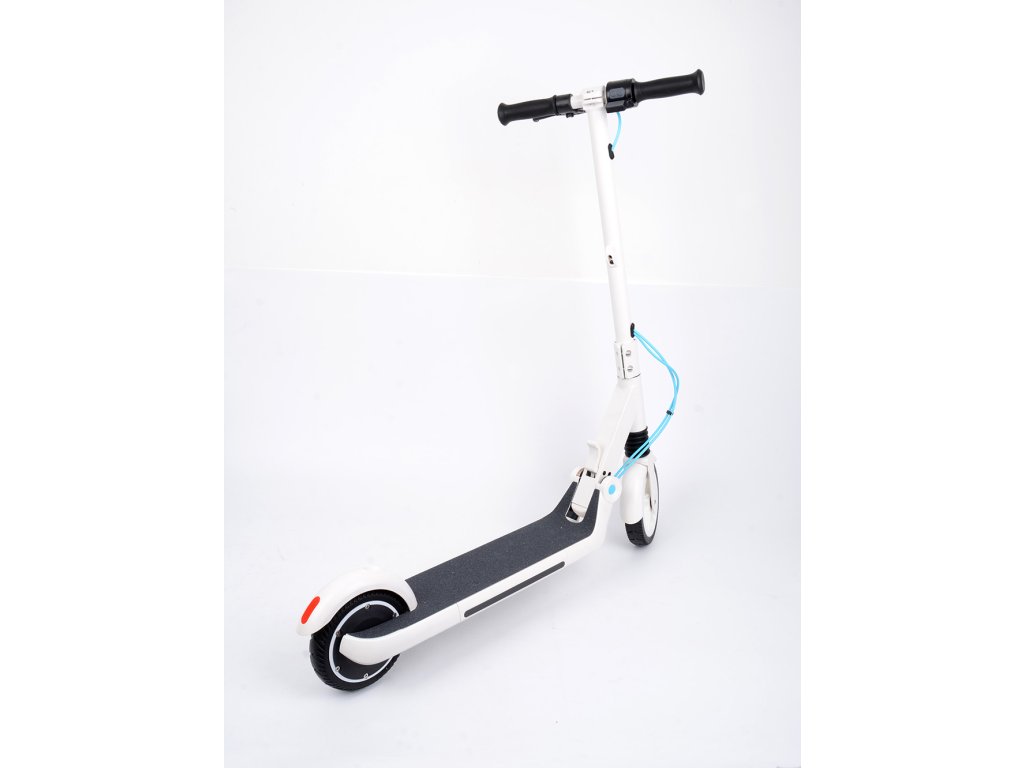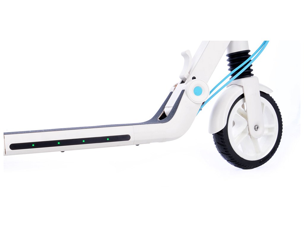 Robustná konštrukcia so 6“ kolesami bez vzduchu zaisťuje bezstarostnú jazdu po dlhú dobu. E-kolobežka je vybavená ovládacím panelom s farebným displejom a akcelerátorom na riadidlách. Na ovládacom paneli je možné voliť z 3 rýchlostných módov (6 km/h, 9 km/h a 14 km/h). Nachádza sa tu tiež tlačidlo na zapnutie a vypnutie svetelného LED RGB pásikov, ktoré sú umiestnené po stranách nášľapnej dosky.